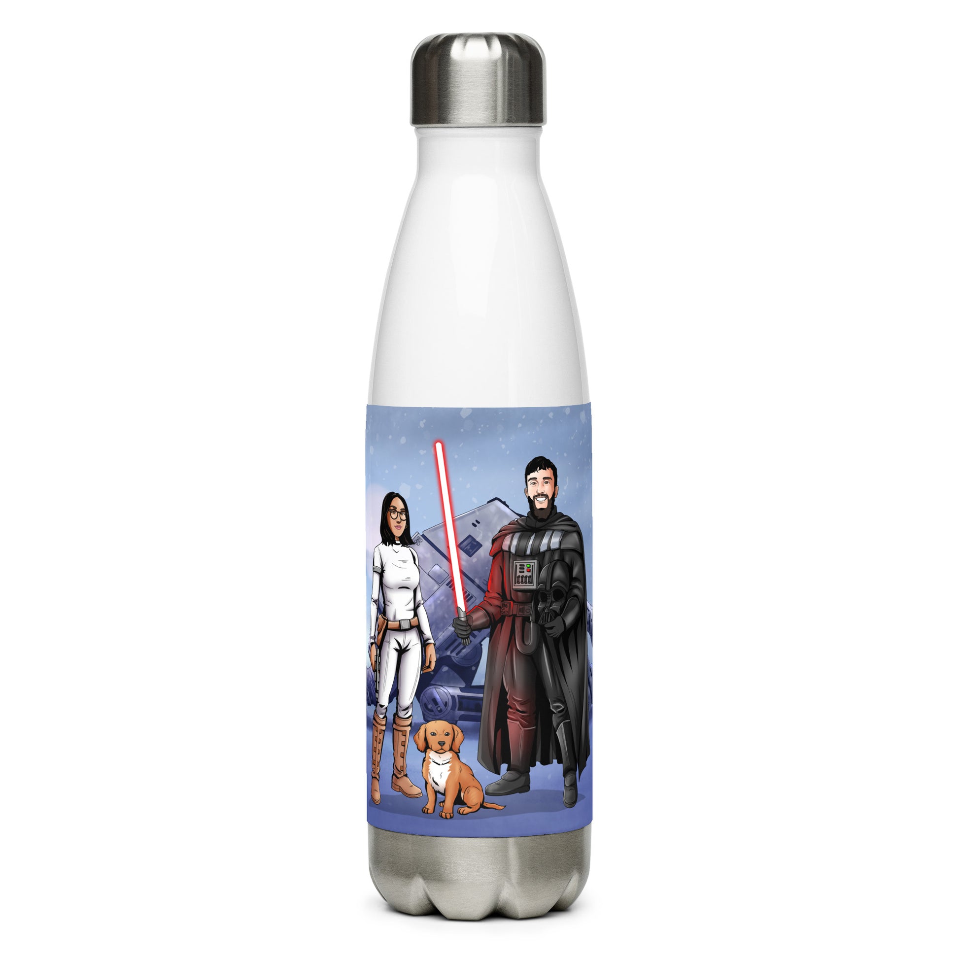 Stay hydrated in style with a personalized Make Me Jedi water bottle featuring your loved ones, pets, and more.