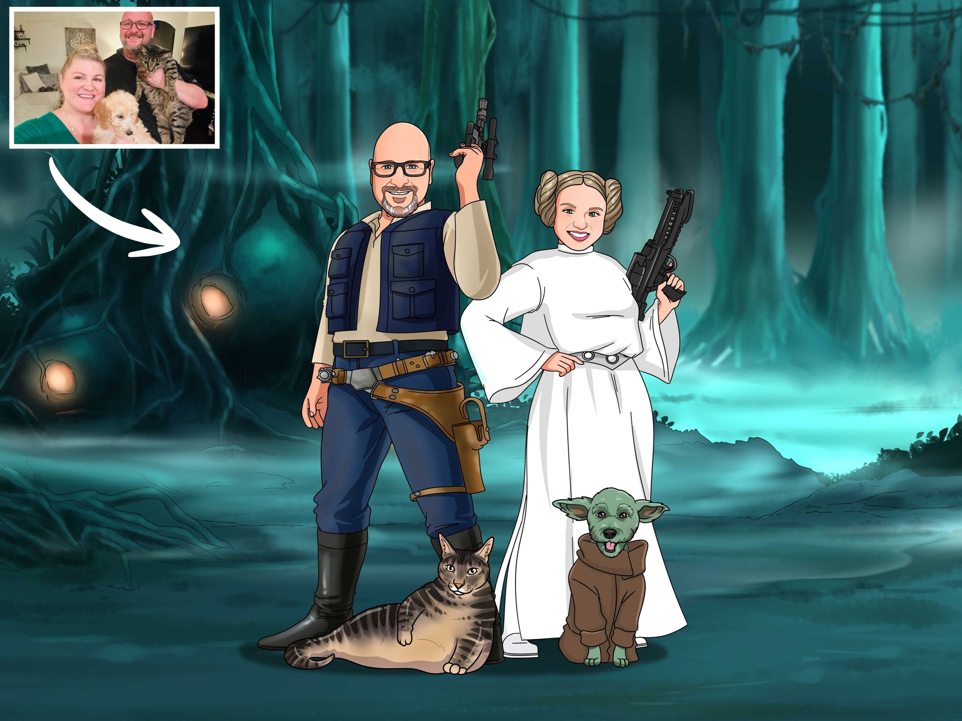 Because each portrait is custom-made, you can cancel before an artist begins your artwork. Once work has started or a preview has been sent, cancellations aren’t guaranteed—but we’ll keep working with you through revisions to make it perfect. If you need help, email contact@makemejedi.comright away and we’ll do our best.